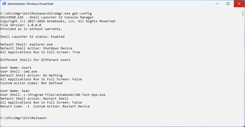 Command Line Utility for Shell Launcher V2